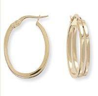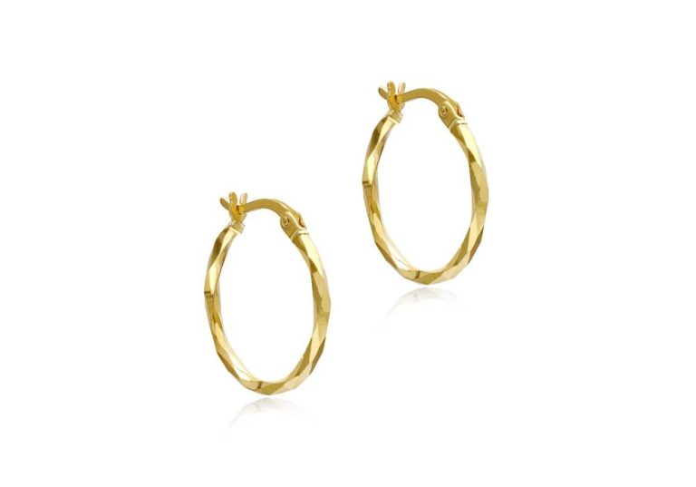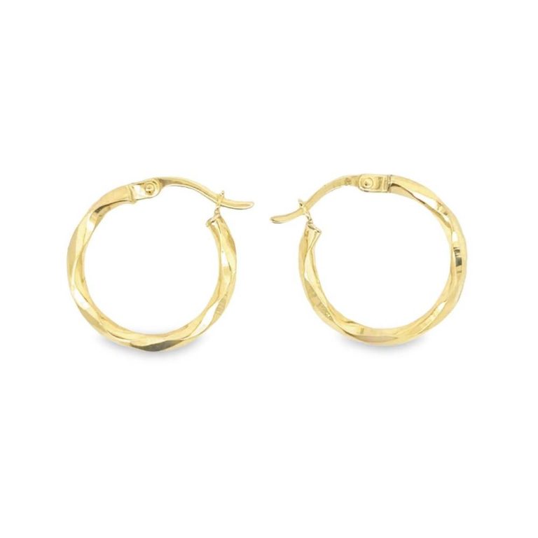 9ct Yellow Gold Faceted Plain Hoop Earrings