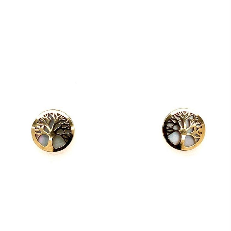 9ct Yellow Gold Mother of Pearl Tree of Life Stud Earrings