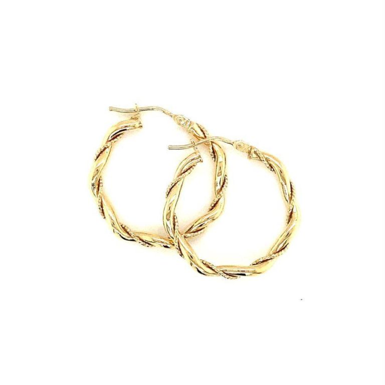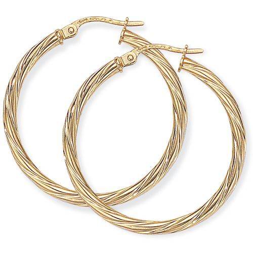 9ct Yellow Gold Medium Twist Hoop Earrings