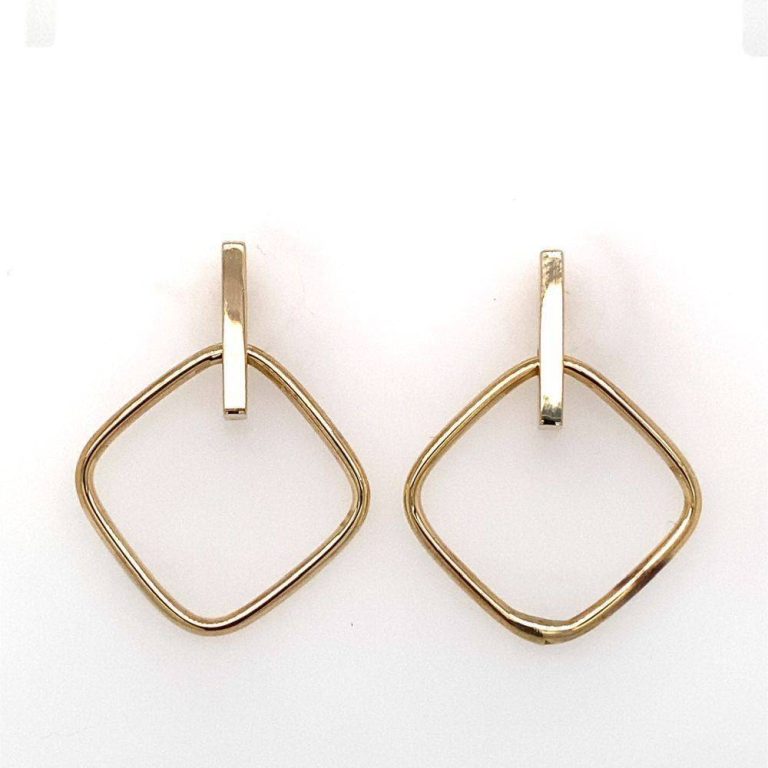 9ct Yellow Gold Open Curved Square Drop Earrings