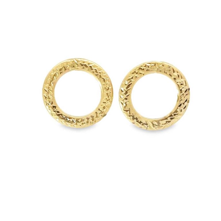 9ct Yellow Gold Open Circle Diamond Cut Stud Earrings