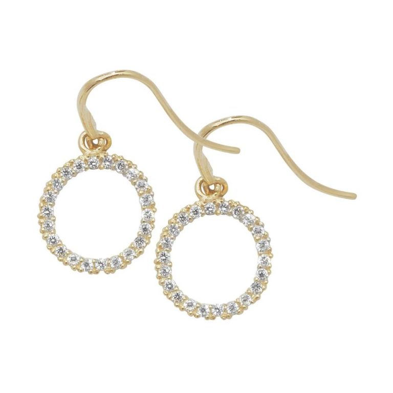 9ct Yellow Gold Open Circle Cubic Zirconia Drop Earrings