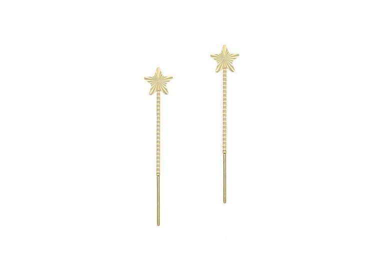 9ct Yellow Gold Pull Through Star Drop Earrings