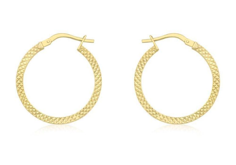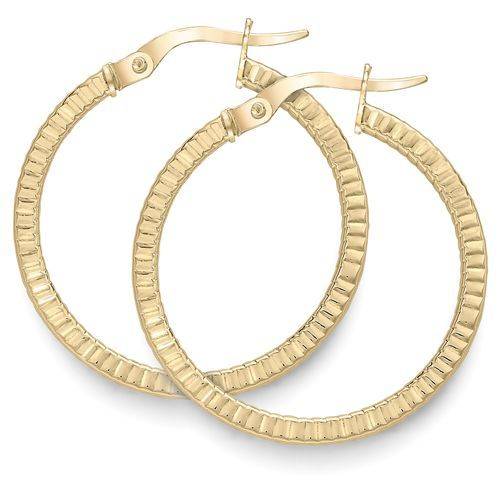 9ct Yellow Gold Patterned Edge Hoop Earrings