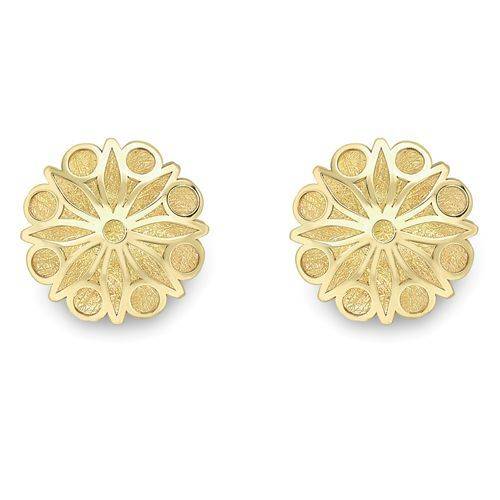 9ct Yellow Gold Round Cut Out Flower Stud Earrings
