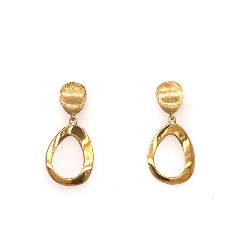 9ct Yellow Gold Satin & Polished Oval Drop Earrings