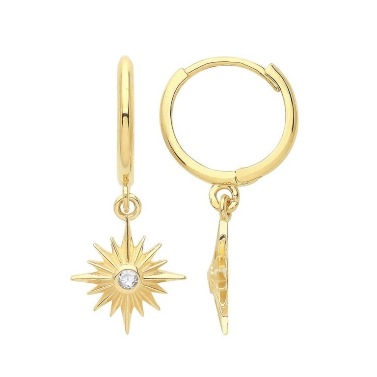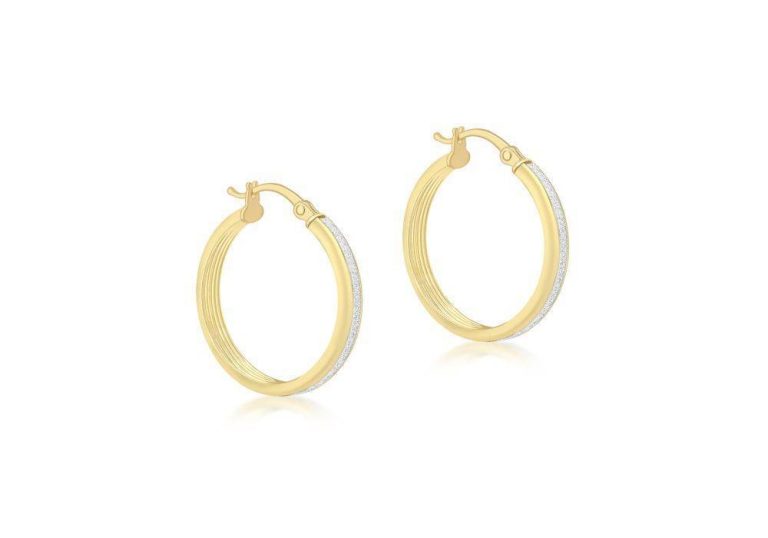 9ct Yellow Gold Stardust Centre Hoop Earrings