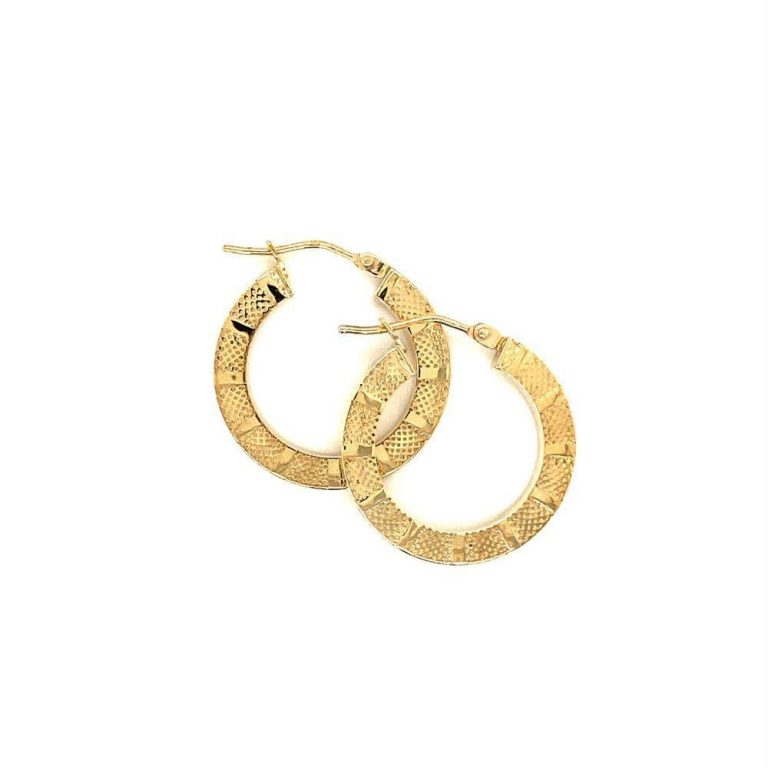 9ct Yellow Gold Textured Line Design Hoop Earrings