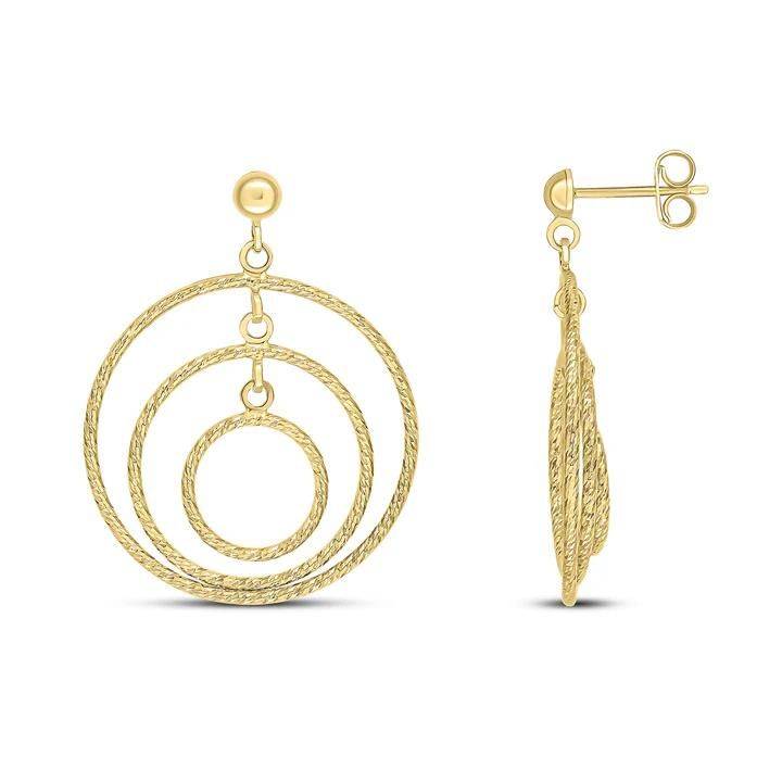 9ct Yellow Gold Triple Textured Circle Drop Earrings