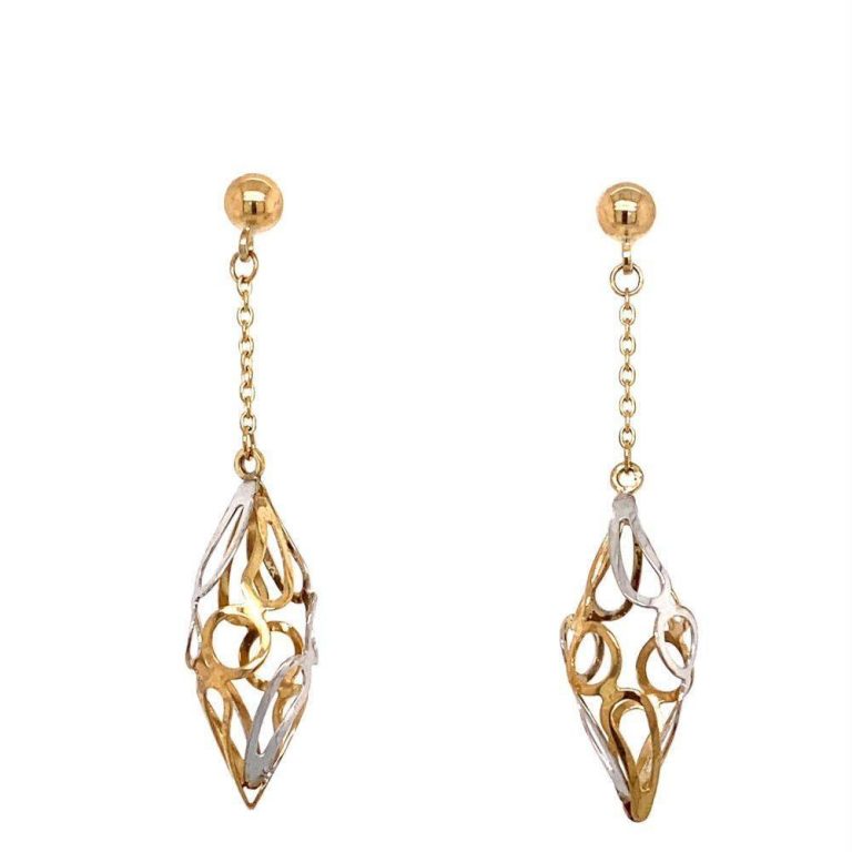 9ct Yellow & White Gold Drop Earrings