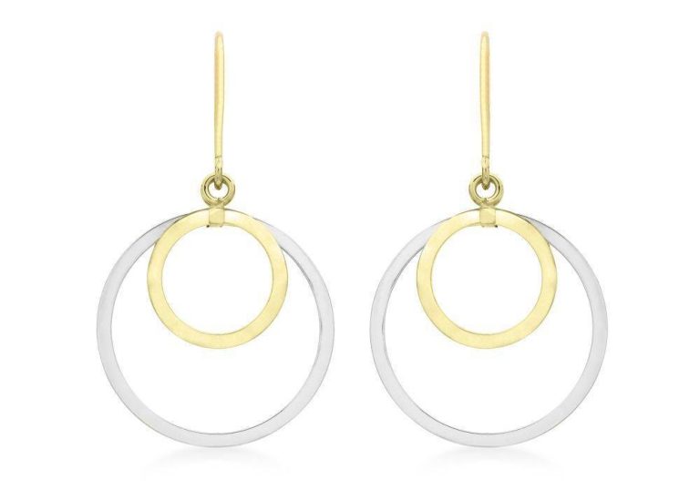 9ct Yellow & White Gold Double Circle Drop Earrings
