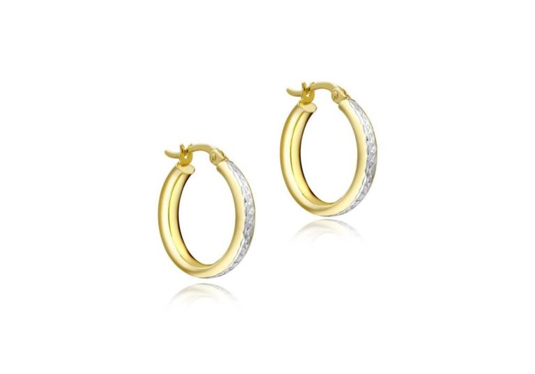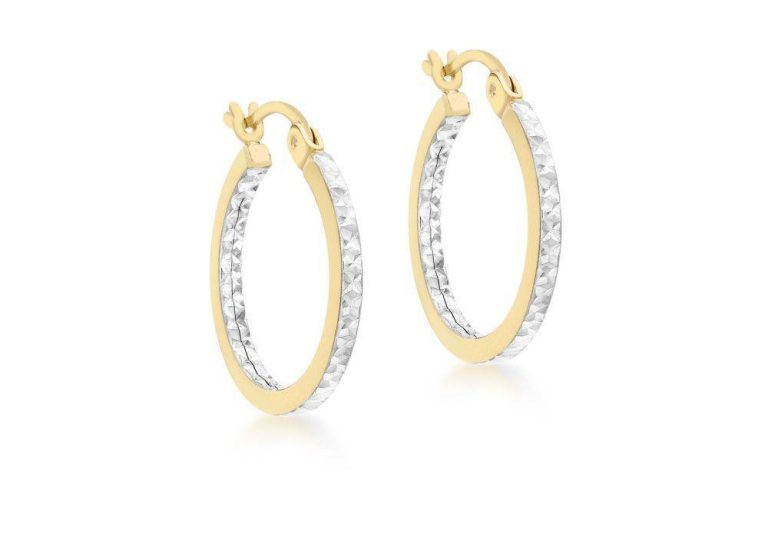9ct Yellow & White Gold Diamond Cut Hoop Earrings