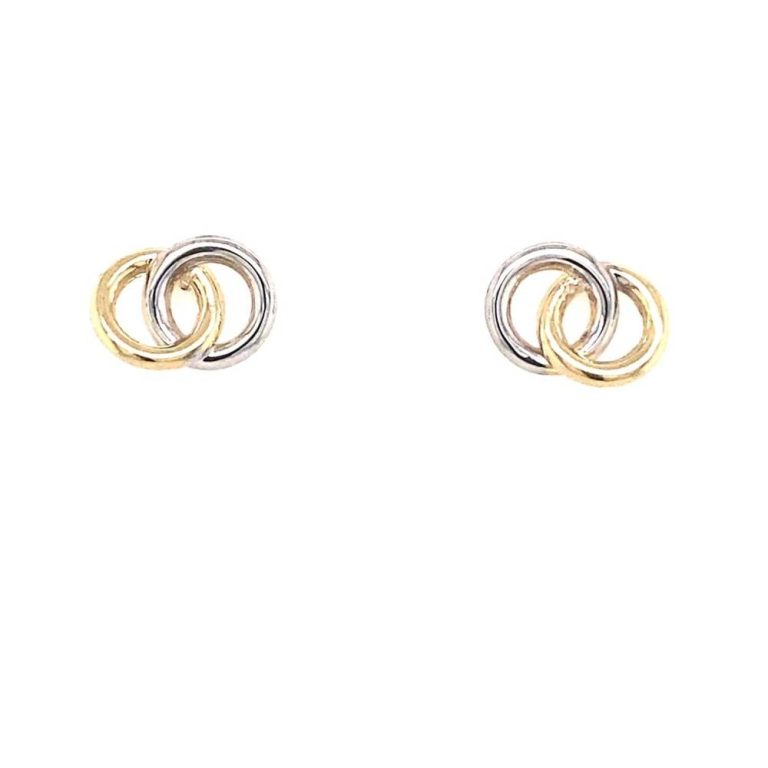 9ct Yellow & White Gold Double Circle Stud Earrings