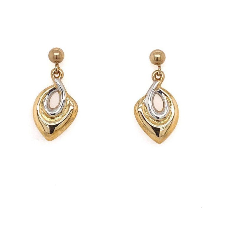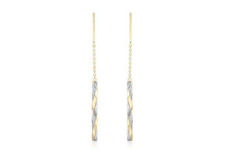 9ct Yellow & White Gold Twist Chain Drop Earrings