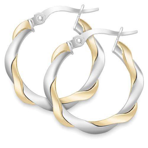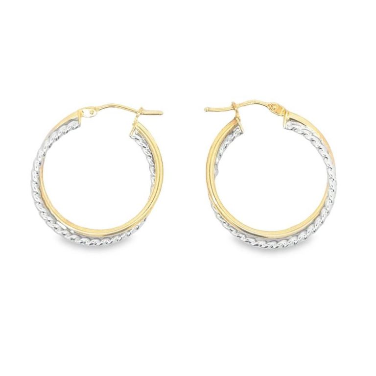 9ct Yellow & White Gold Two Row Hoop Earrings