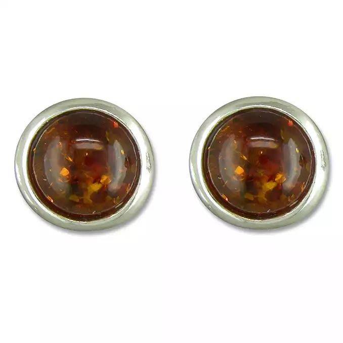 Silver Round Amber Stud Earrings