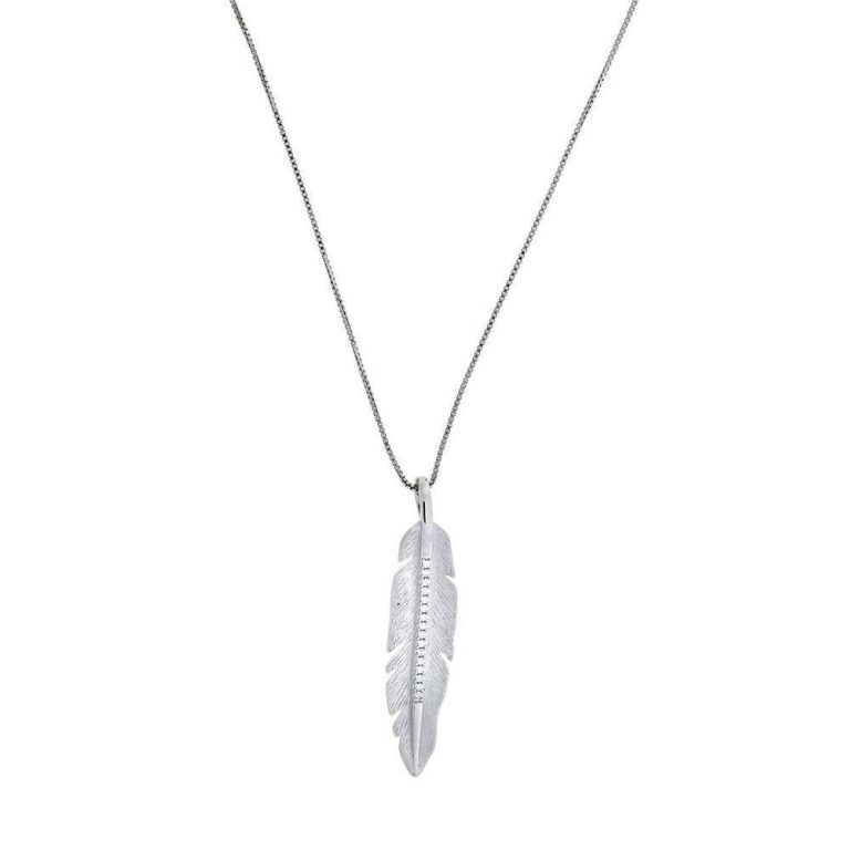 Azendi Silver Satin Feather Pendant