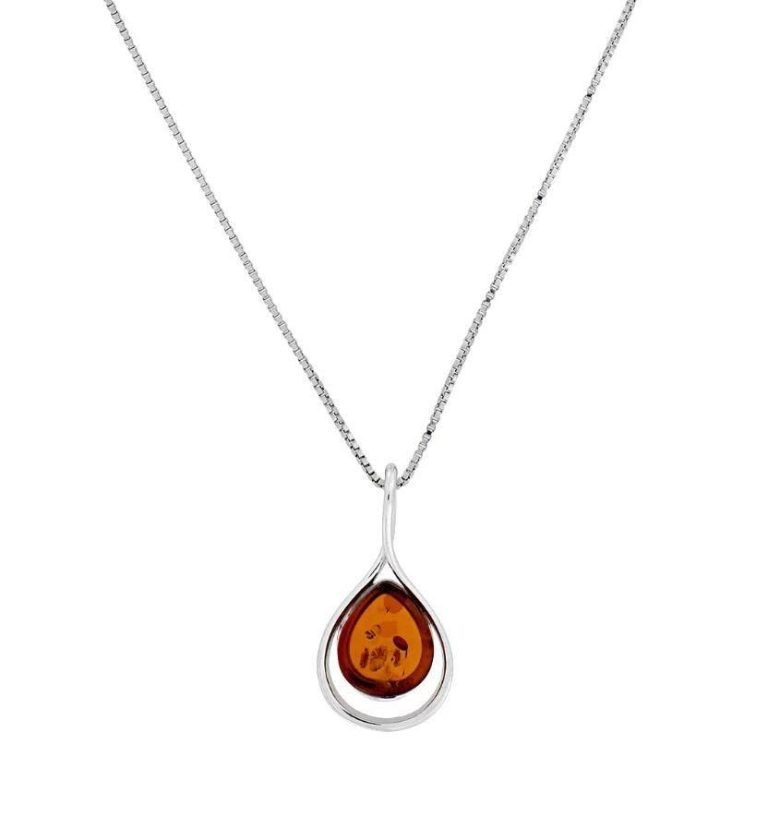 Azendi Silver Amber Teardrop Pendant