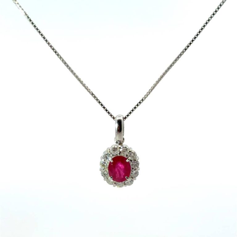 Platinum Oval Ruby & Diamond Three Stone Ring