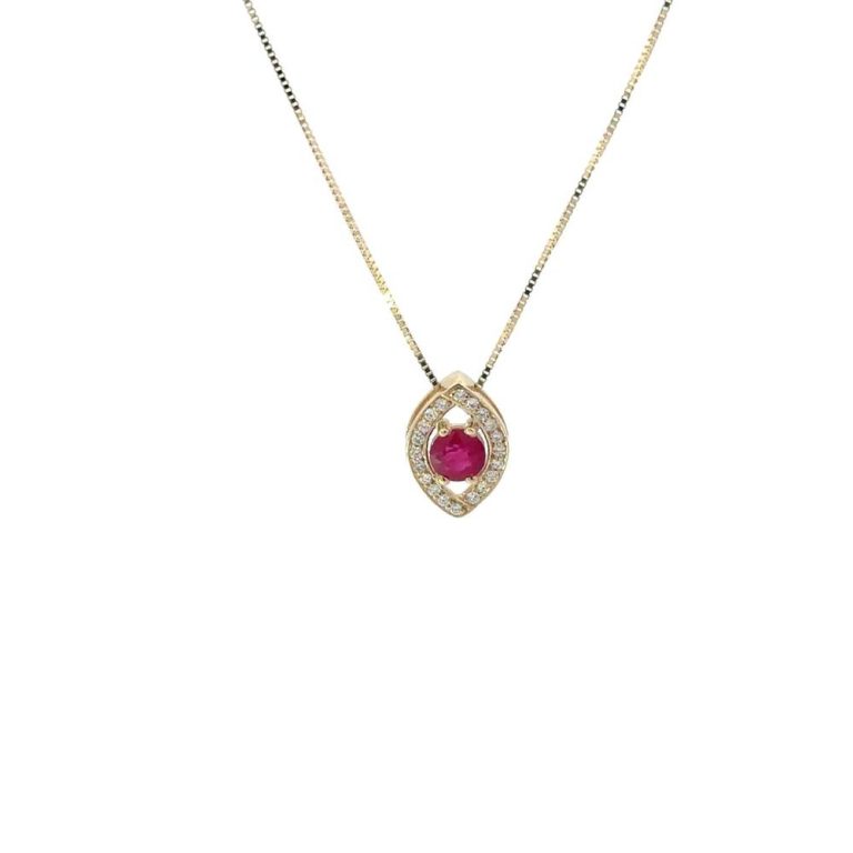 9ct Yellow Gold Marquise Shaped Ruby & Diamond Pendant