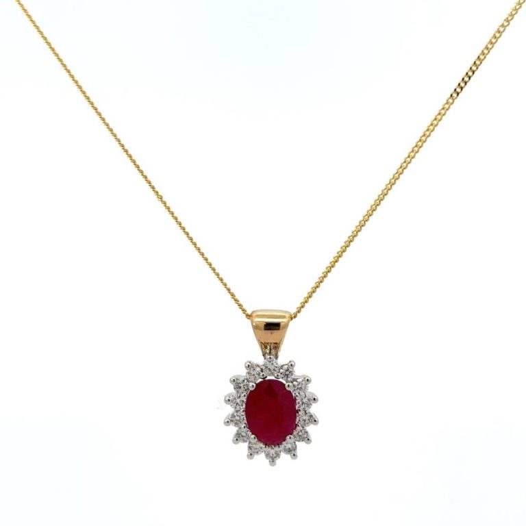 18ct Yellow & White Gold Ruby & Diamond Oval Cluster Pendant