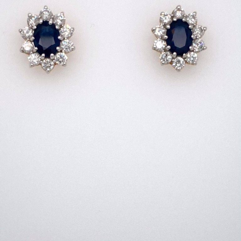 18ct Yellow Gold Sapphire & Diamond Oval Cluster Earrings
