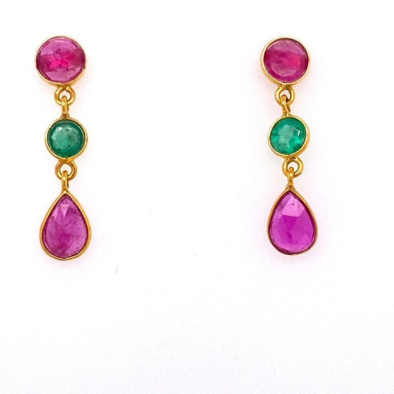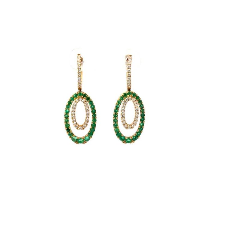18ct Yellow Gold Emerald & Diamond Ovals Drop Earrings