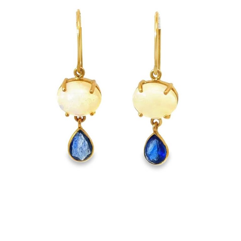 18ct Yellow Gold Opal & Sapphire Drop Earrings