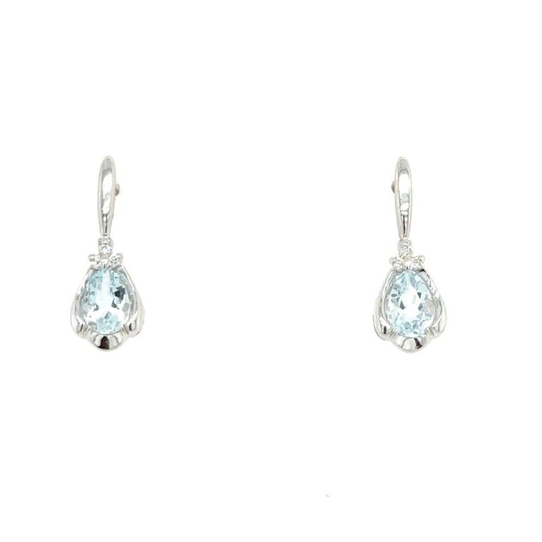 9ct White Gold Aquamarine & Diamond Drop Earrings