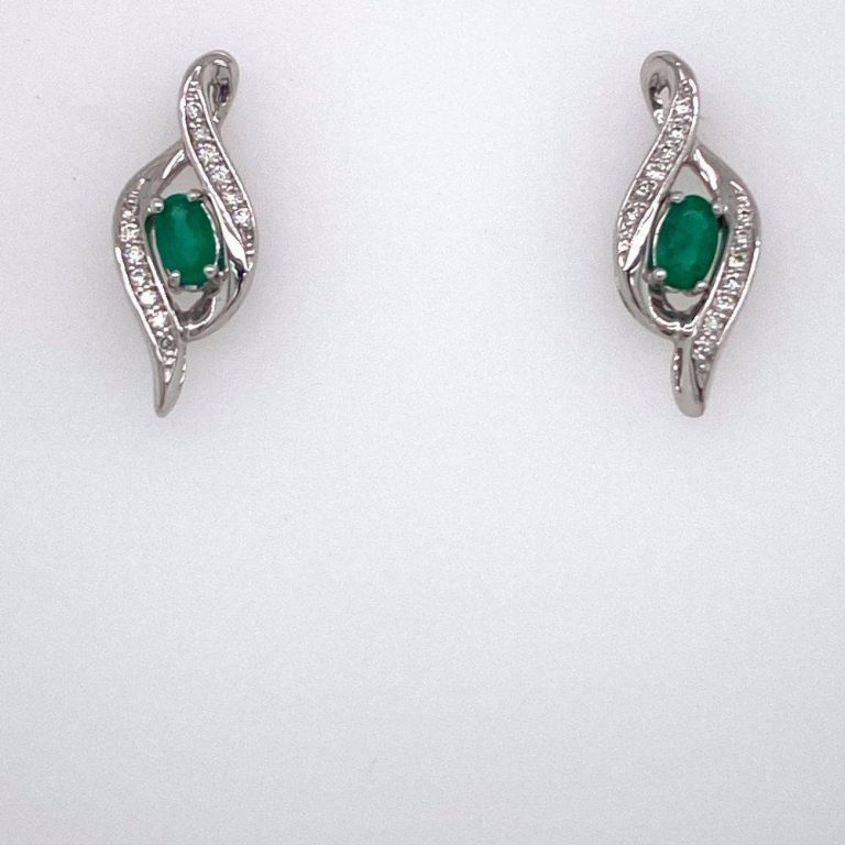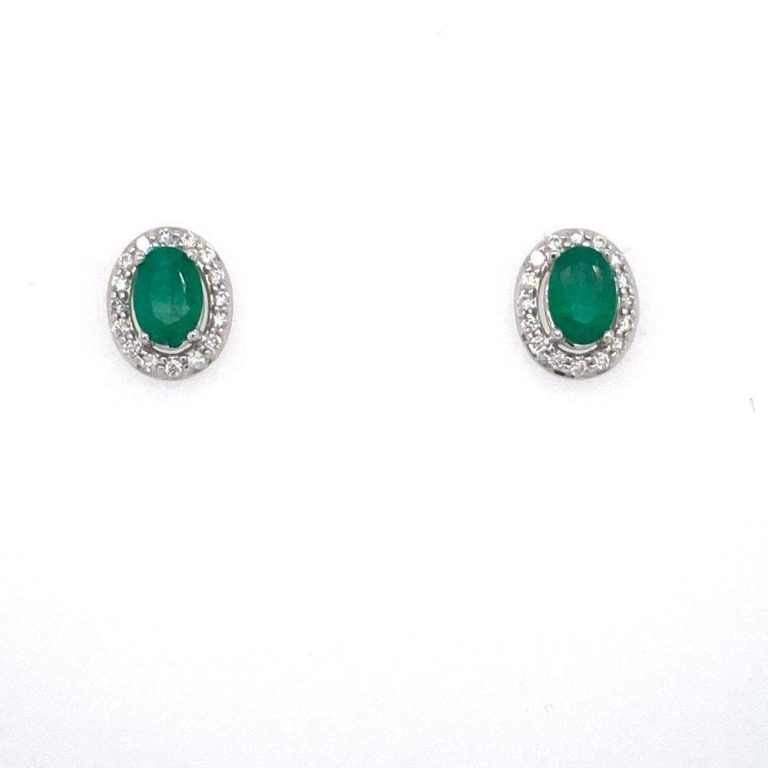 9ct White Gold Oval Emerald & Diamond Stud Earrings