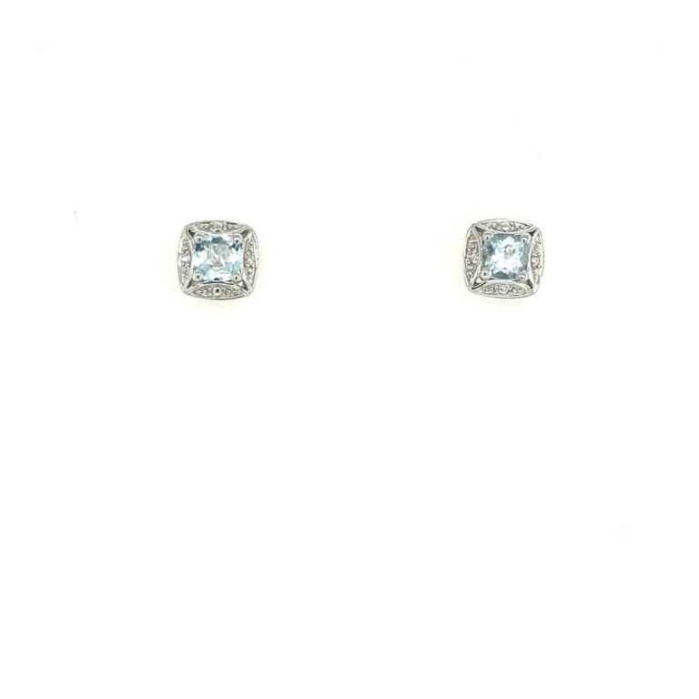 9ct White Gold Cushion Shaped Aquamarine & Diamond Earrings