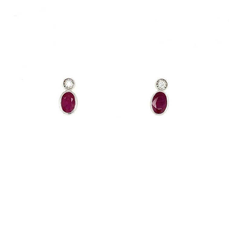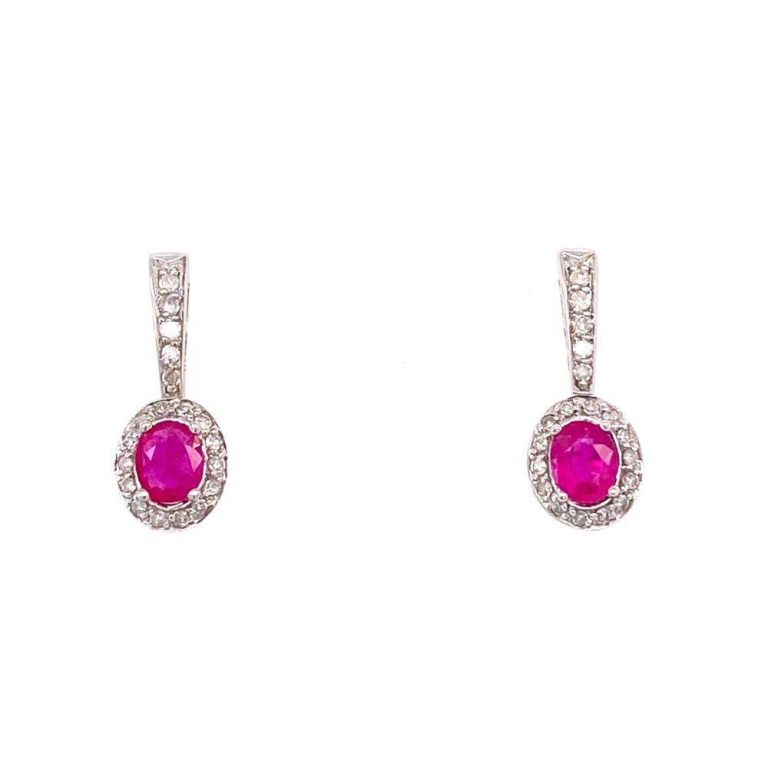 9ct White Gold Oval Ruby & Diamond Drop Earrings