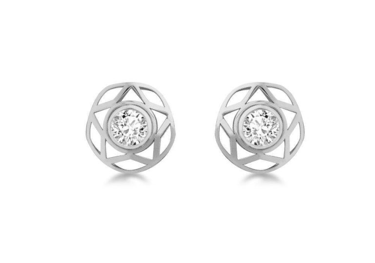 9ct White Gold Cubic Zirconia Star Surround Stud Earrings