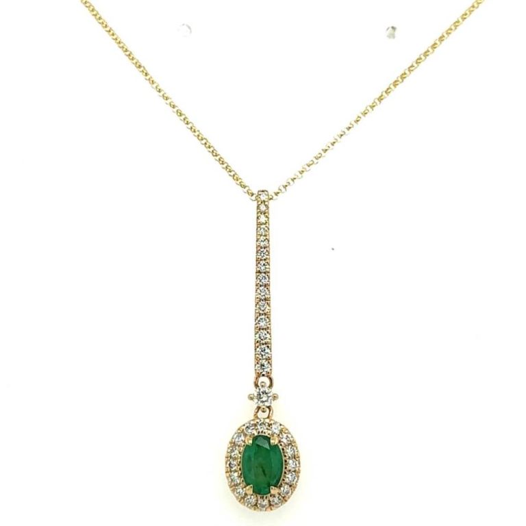 18ct Yellow Gold Emerald & Diamond Cluster Drop Pendant