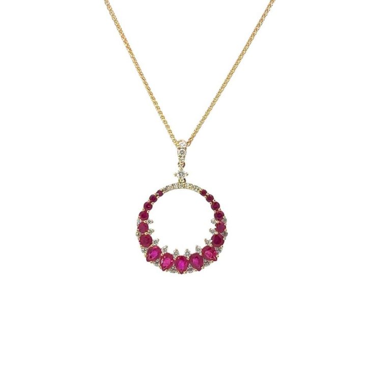 18ct Yellow Gold Open Circle Ruby & Diamond Pendant