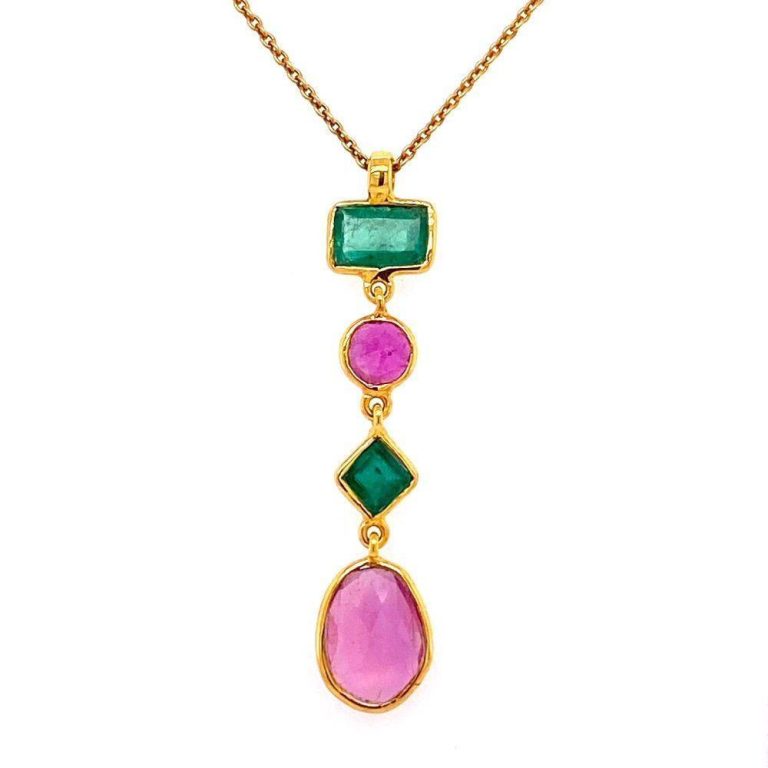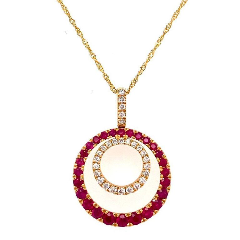 18ct Yellow Gold Ruby & Diamond Circles Pendant