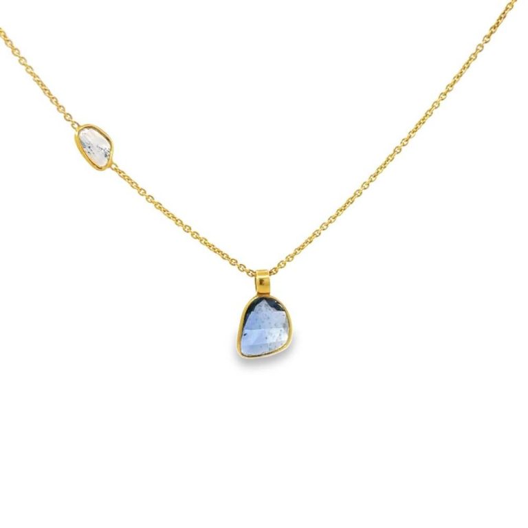 18ct Yellow Gold Sapphire & Diamond Slice Pendant