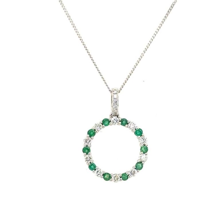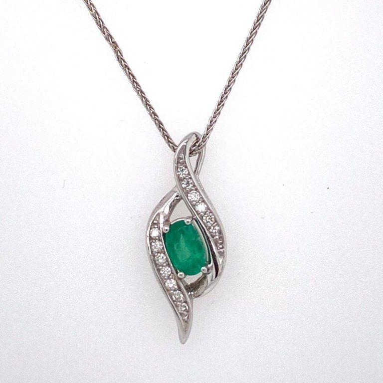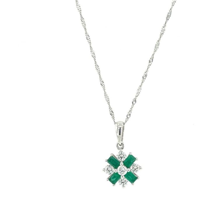 9ct White Gold Emerald & Diamond Fancy Pendant