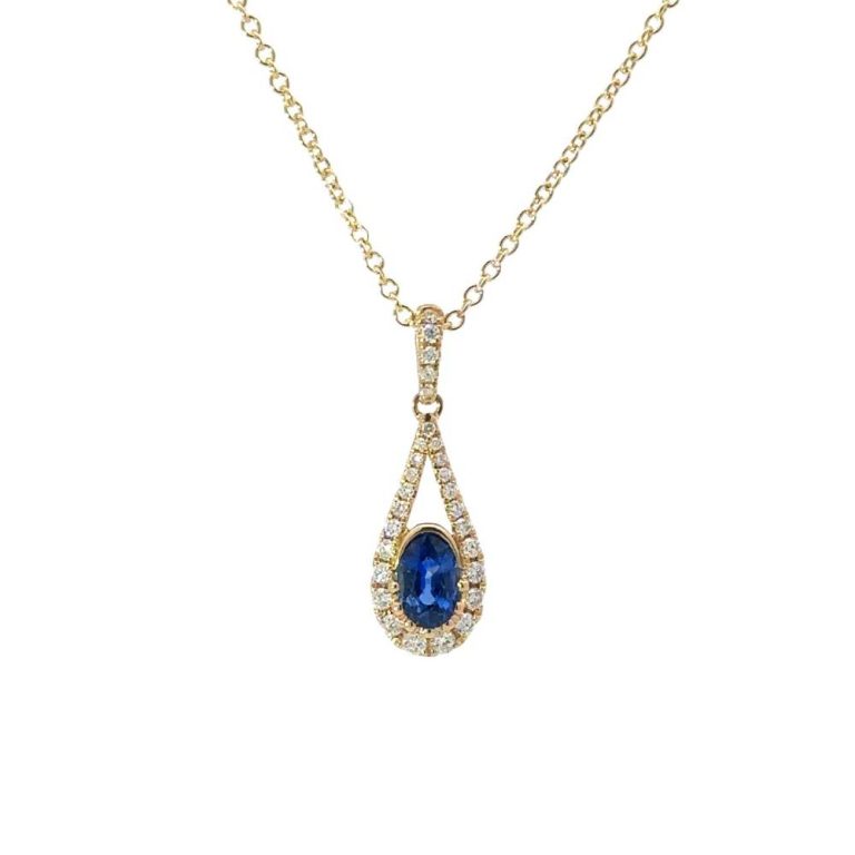 18ct Yellow Gold Oval Sapphire & Diamond Pear Shaped Pendant
