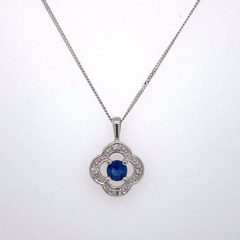 9ct White Gold Sapphire & Diamond Clover Pendant