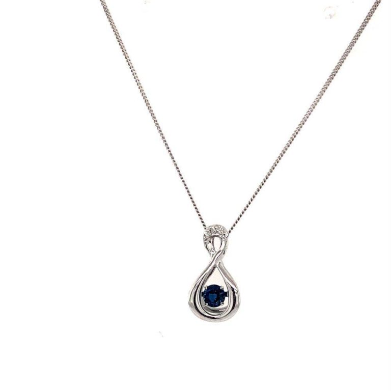 9ct White Gold Twist Teardrop Sapphire & Diamond Pendant