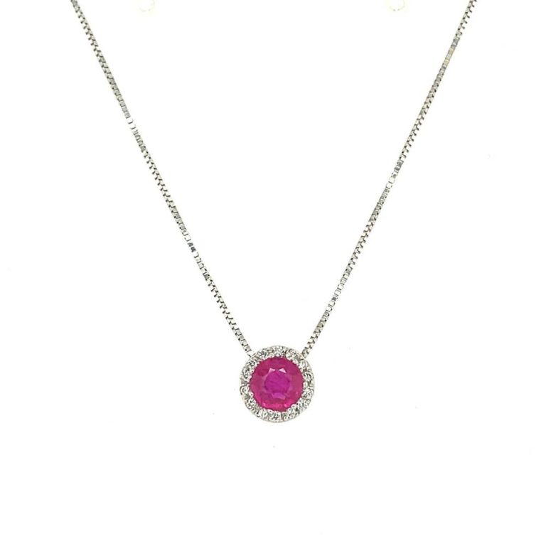 9ct White Gold Round Ruby & Diamond Cluster Pendant