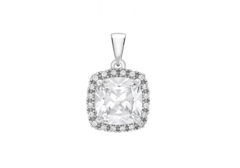 9ct White Gold Square Cubic Zirconia Halo Pendant