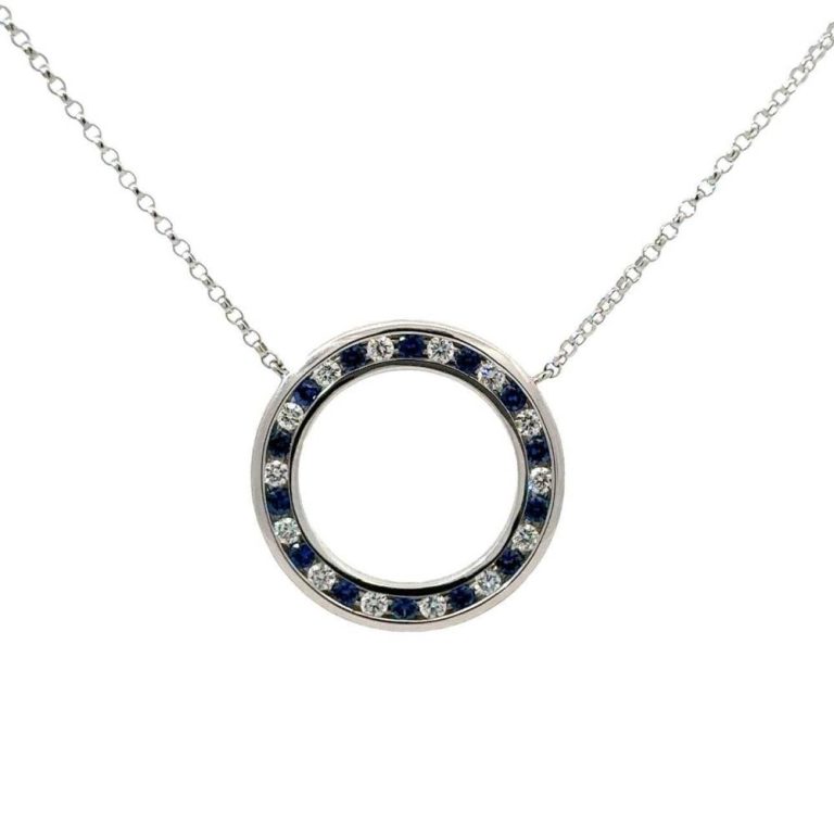 9ct White Gold Sapphire & Diamond Circle Pendant