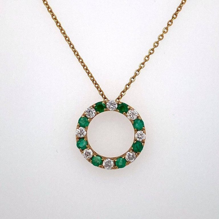 9ct Yellow Gold Emerald and Diamond Circle Pendant