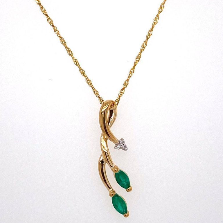 9ct Yellow Gold Emerald & Diamond Vine Pendant