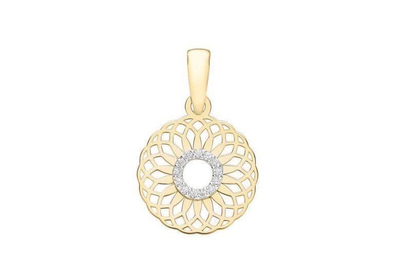 9ct Yellow Gold OPen Spiral Design Cubic Zirconia Pendant