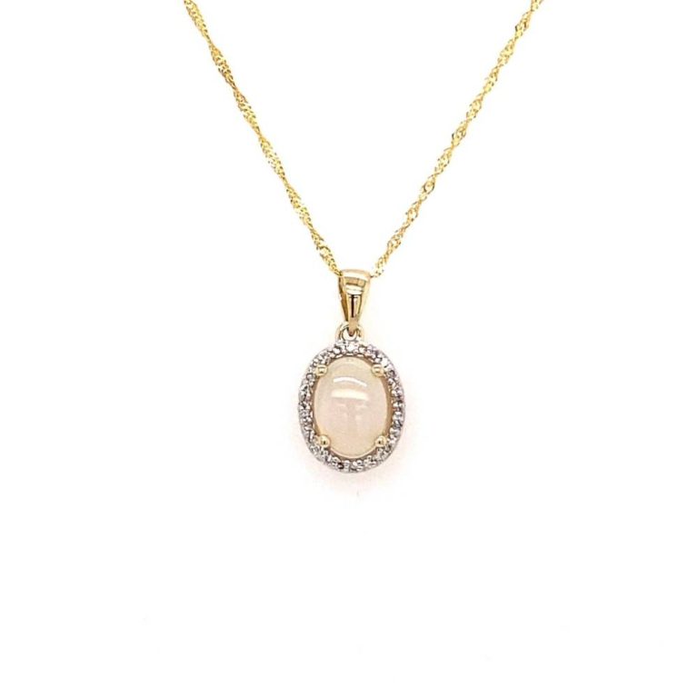 9ct Yellow Gold Oval Opal & Diamond Pendant