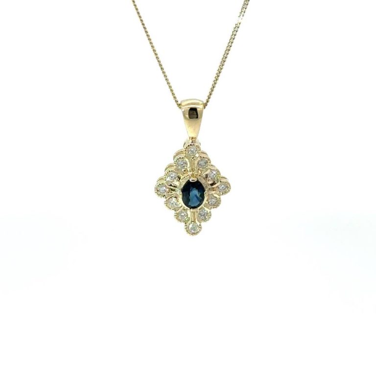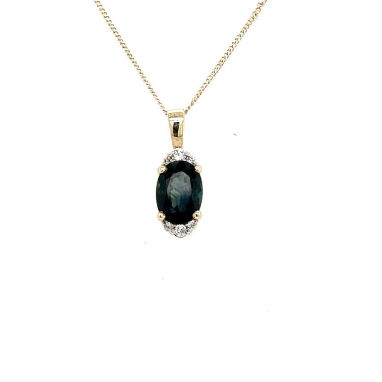 9ct Yellow Gold Oval Sapphire & Diamond Pendant