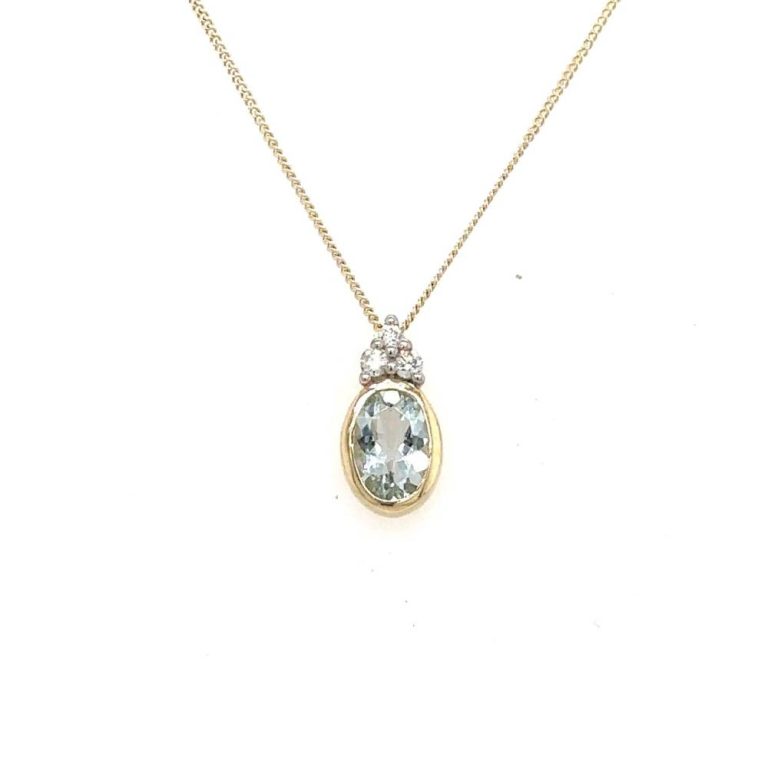 9ct Yellow Gold Oval Aquamarine & Diamond Pendant